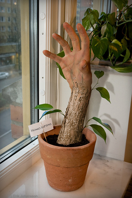 this photo has a comical aspect to it however it envokes many emotions, the man in the photo does not look very pleased but then again nor would i be if i was a puppet. aside from his work being very interesting to look at, Johansson addresses some interesting issues for example the picture of the man pulling the road over the grass could be suggesting that we the human race are destroying the environment.